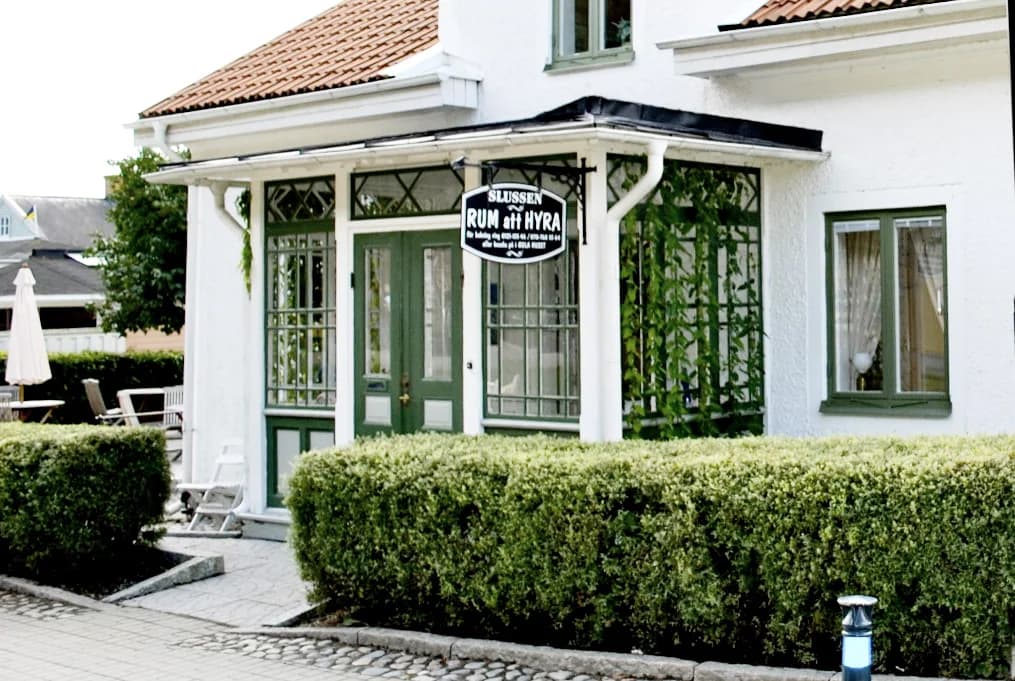 Slussen Rum ligger vid Göta kanal, gästhamnen och slussen mitt i händelsernas centrum i historiska Söderköping i Östergötland. Slussen är familjeägt boende drivet av Katarina, Robert och Lithea som välkomnar privatgäster, grupper och företag året runt. Boendet är inrett i kulturhus med gammaldags gårdsmiljö som bevarar historisk charm. Läget direkt vid kanalen ger unik upplevelse med utsikt över vatten och slussande båtar.